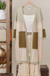 Color Block Patch Pocket Long Cardigan Size : Small Actual product color may vary from the images shown. Every monitor or mobile display has a different capability to display colors, and every individual may see these colors differently.