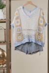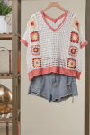 Boho Crochet Patchwork V Neck Short Sleeve Top Size : Small Actual product color may vary from the images shown. Every monitor or mobile display has a different capability to display colors, and every individual may see these colors differently.