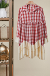 BOHO PLAID BUTTON-DOWN SHIRT DRESS WITH RUFFLED Size : Small Actual product color may vary from the images shown. Every monitor or mobile display has a different capability to display colors, and every individual may see these colors differently.