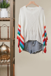 Cable Knit Sweater with Rainbow Stripe Size : Small Actual product color may vary from the images shown. Every monitor or mobile display has a different capability to display colors, and every individual may see these colors differently.