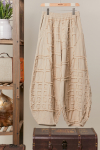 CASUAL BEIGE TEXTURED PANTS Size: Small A relaxed, bohemian-style dress featuring a beautiful floral patchwork design. This dress is perfect for casual outings or laid-back events. It includes long sleeves, a ruffled hem, and a comfortable fit that pairs well with sneakers or sandals. Available in sizes S, M, L. Actual product color may vary from the images shown. Every monitor or mobile display has a different capability to display colors, and every individual may see these colors diff