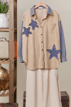 Corduroy Shirt Denim Collar with Distressed Star Size : Small Actual product color may vary from the images shown. Every monitor or mobile display has a different capability to display colors, and every individual may see these colors differently.
