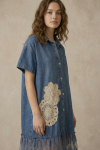 DENIM SHIRT DRESS WITH LACE DETAIL Size : Small Actual product color may vary from the images shown. Every monitor or mobile display has a different capability to display colors, and every individual may see these colors differently.