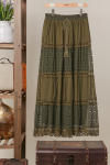 Elastic Waist Maxi Skirt with Lace Trim Size : Small Actual product color may vary from the images shown. Every monitor or mobile display has a different capability to display colors, and every individual may see these colors differently.