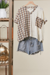 PRINT HALF CHEKER SHORT SLEEVES V NECK TOP Size : Small Actual product color may vary from the images shown. Every monitor or mobile display has a different capability to display colors, and every individual may see these colors differently.