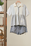 STRIPED SHIRT WITH LACE FLOWER DETAIL Size : Small Actual product color may vary from the images shown. Every monitor or mobile display has a different capability to display colors, and every individual may see these colors differently.